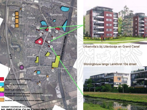 Voorbeelden van de zgn. urbanvilla's bij het Uilenbosje en het Grand Canal en de nieuw te bouwen woningen aan de Lankforst