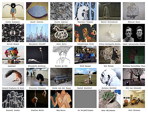 | Arno Arts | mama bart | Marcel Bors | Lobke Burgers | Francine Claassen | Sebastiaan Dijk | | Gerhard Stephanus de Groot | Arvid Hagen | Andreas Hetfeld | Merel Holleboom | Korneel Jeuken | Elisabeth Kaldeway | | Eveline Kieskamp & Ine Boeijen | Rachel Kruithof | Carel Lanters & Jan Wierda | Evelien Melis | Meg Mercx | | Niq Nguyen | Rik van Schendel | Geert Schiks | Roeki Symons | Marjorie Slooff | Dini Thomsen | Marleen Vogels | | Kees Willemsen | Dorien de Wit | Rob Verwer | Walking Faces & Emmy Chau | Gonda van der Zwaag |